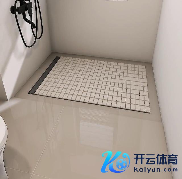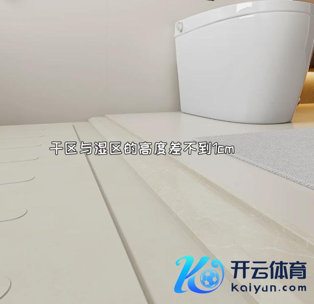 足下下千里式联想,界分干区和湿区,湿区比干区低两厘米傍边,作念成一定坡度,同期在淋浴区铺拉槽大理石,这么老东说念主和小孩子洗浴安全就更有保险。