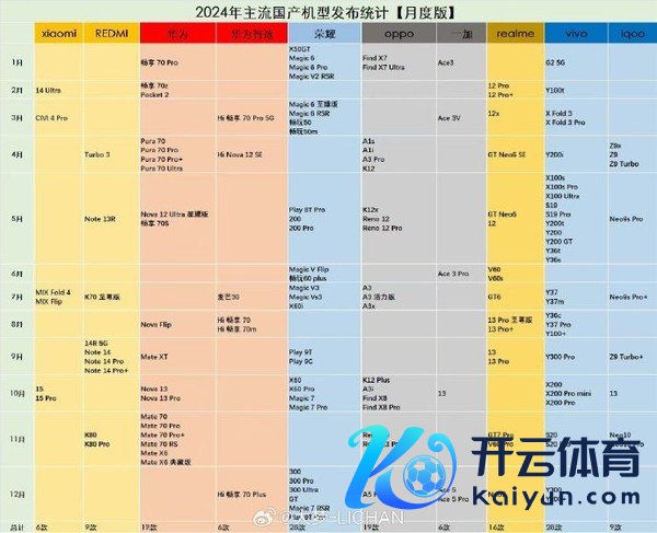 【CNMO科技音问】2024年行将牺牲。近日,CNMO提防到,有博主统计了2024年华为、小米、OPPO、vivo、荣耀等主流手机厂商的机型名单。