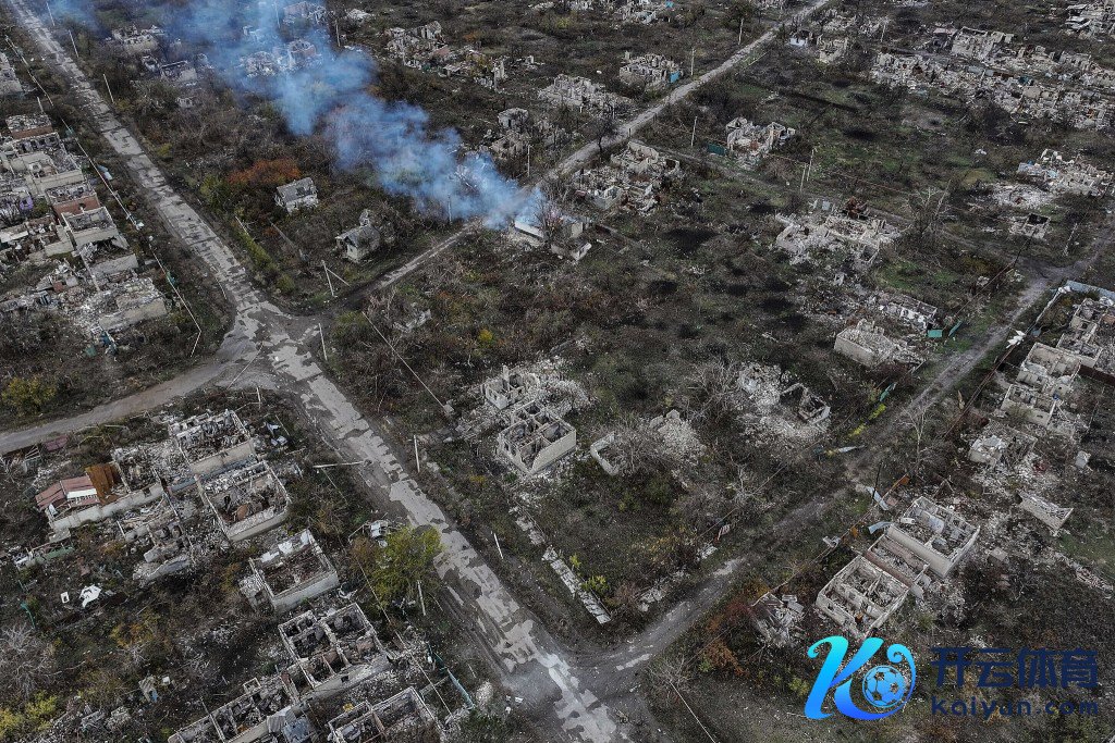 当地时间2024年11月11日,乌克兰顿涅茨克地区,查西夫亚尔的空中视角显现,经过俄乌强烈交战,这座前列城市已化为废地。