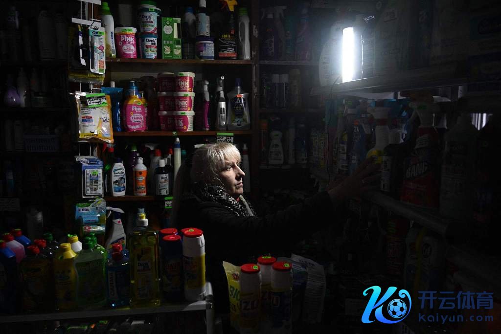 当地时间2024年11月28日,乌克兰利沃夫,别称当地住户在商店内待着,俄罗斯对乌克兰动力基础步骤的攻击导致局部停电。