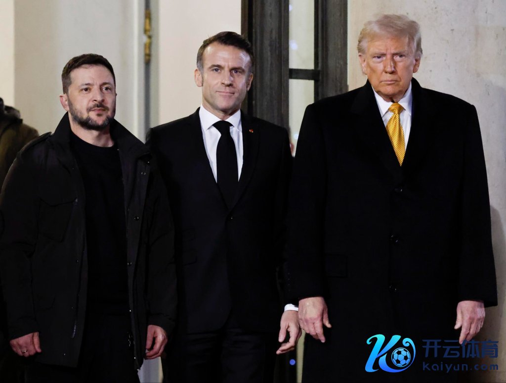当地时间2024年12月7日,法国总统马克龙(中)与好意思国当选总统特朗普(右)和乌克兰总统泽连斯基会晤后走出爱丽舍宫。