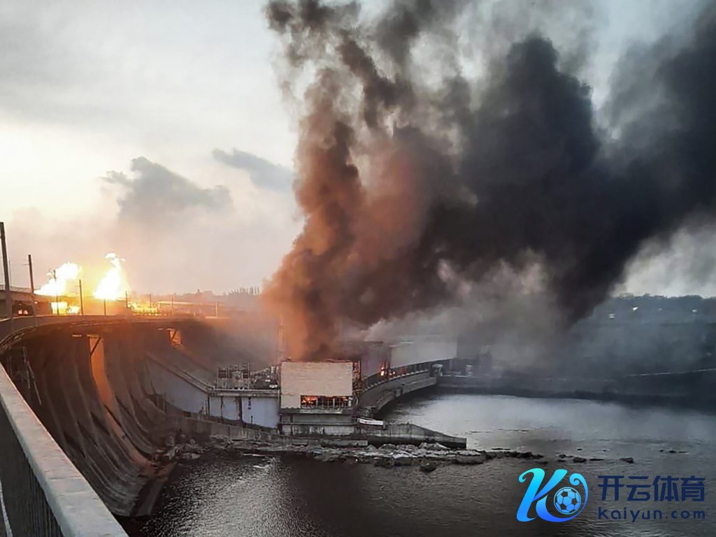 当地时间2024年3月22日,乌克兰第聂伯河水电站遭俄军要紧,现场燃起熊熊大火,浓烟滔滔。